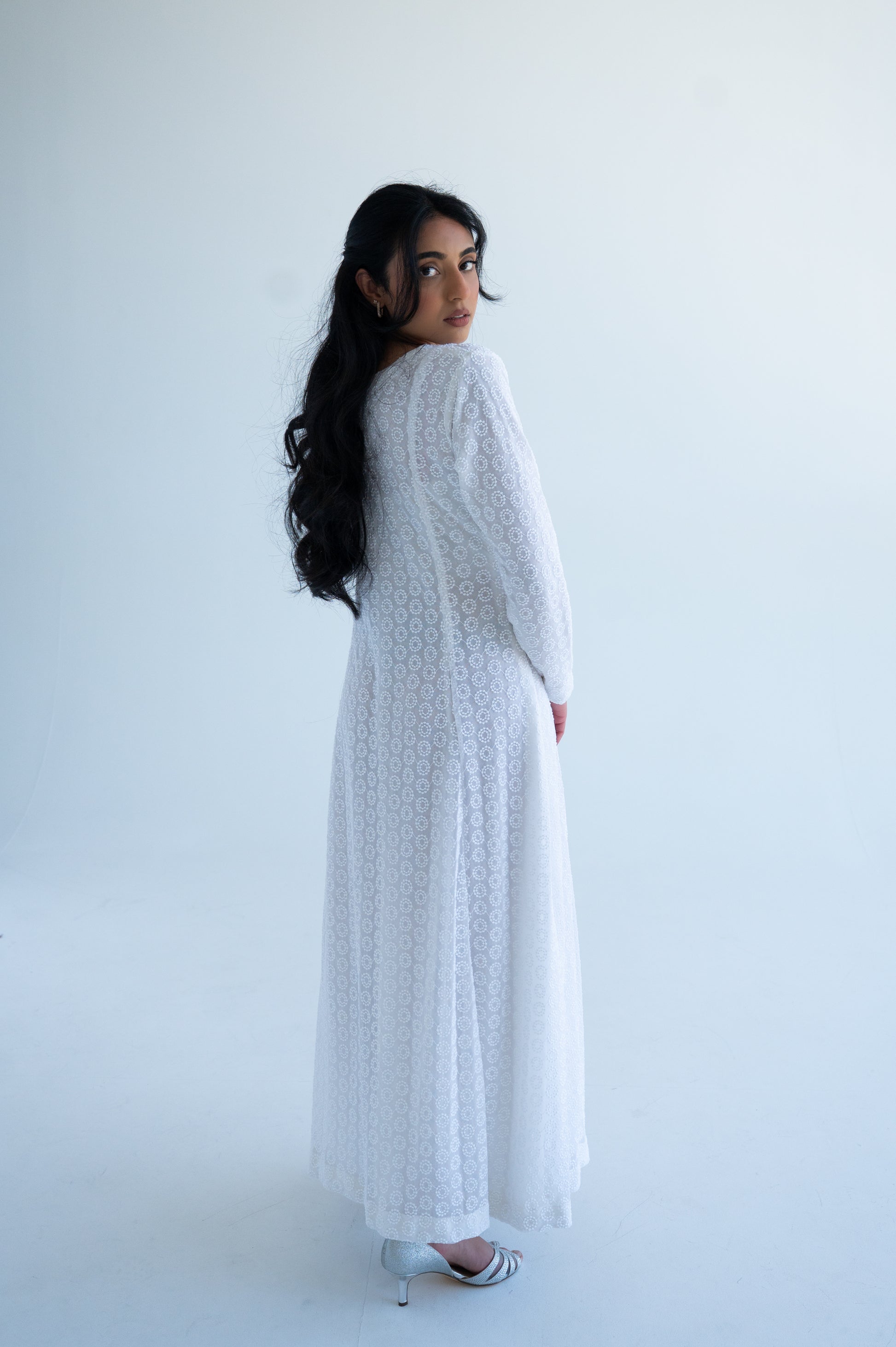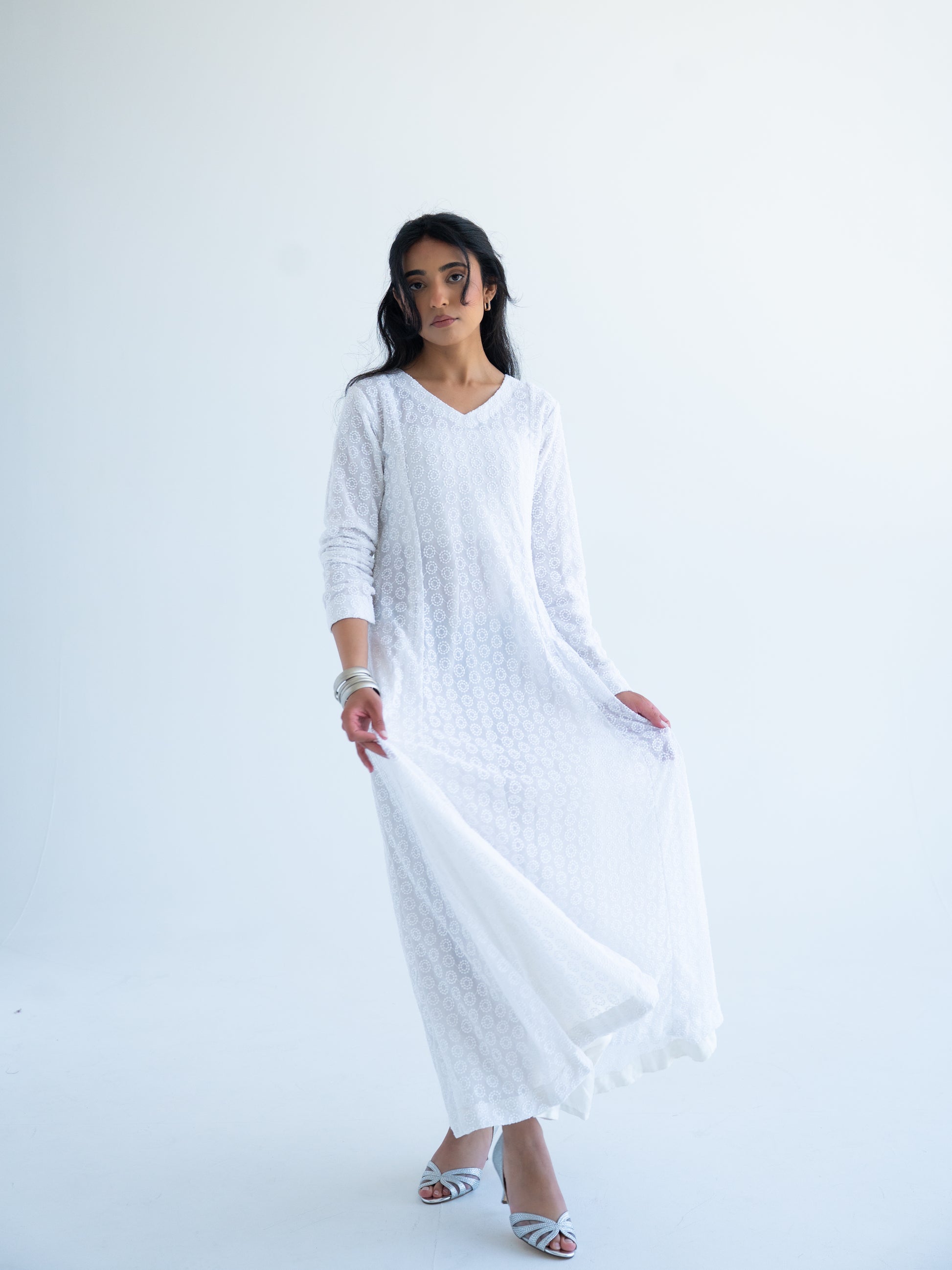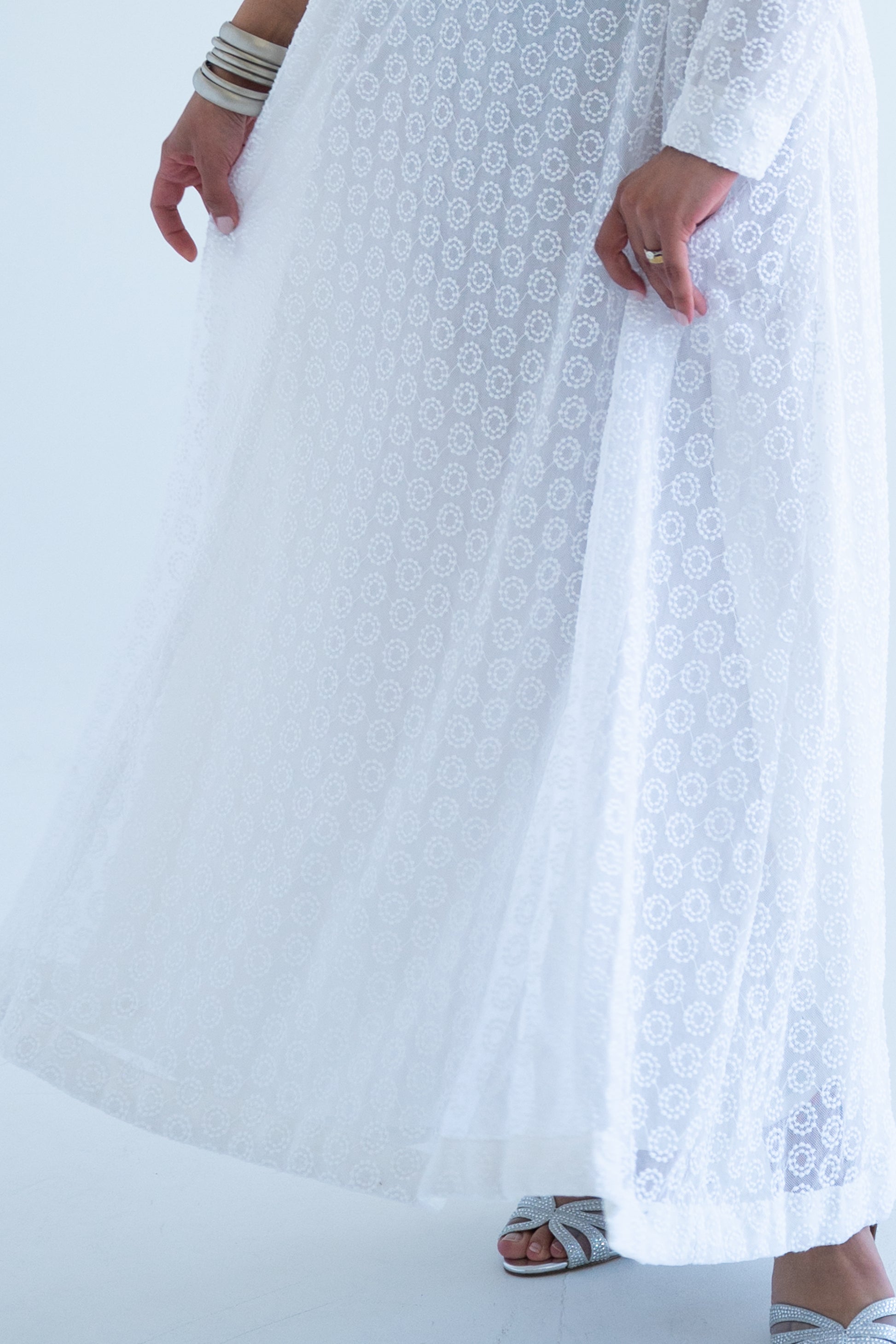 Hawa is at the perfect white summer dress. It is made of beautiful net with lining underneath.