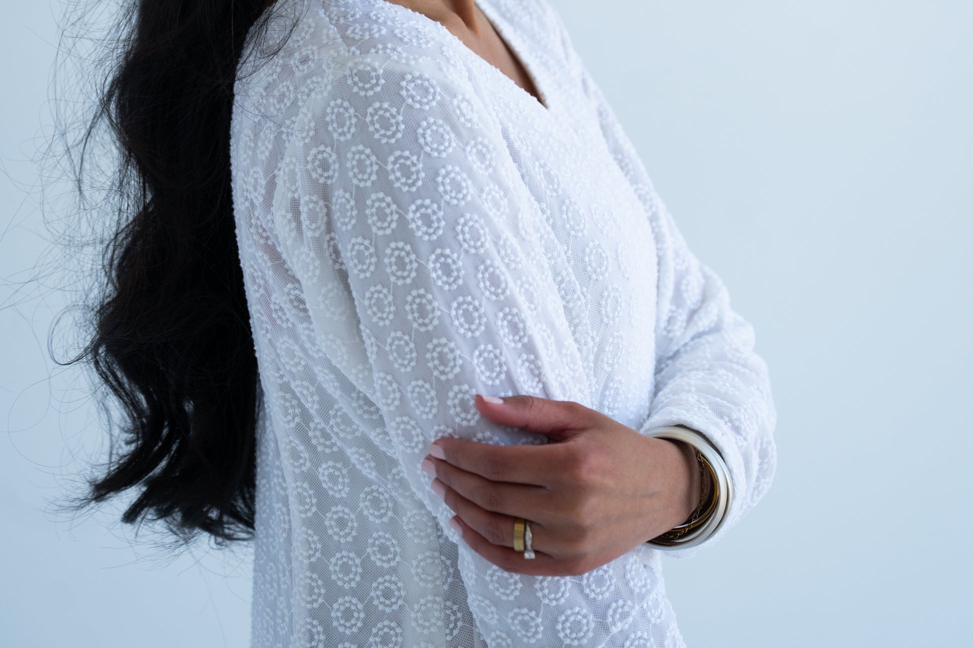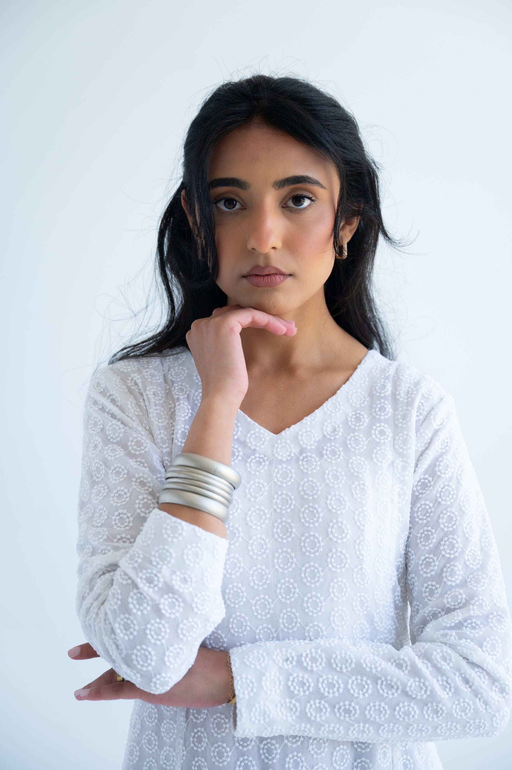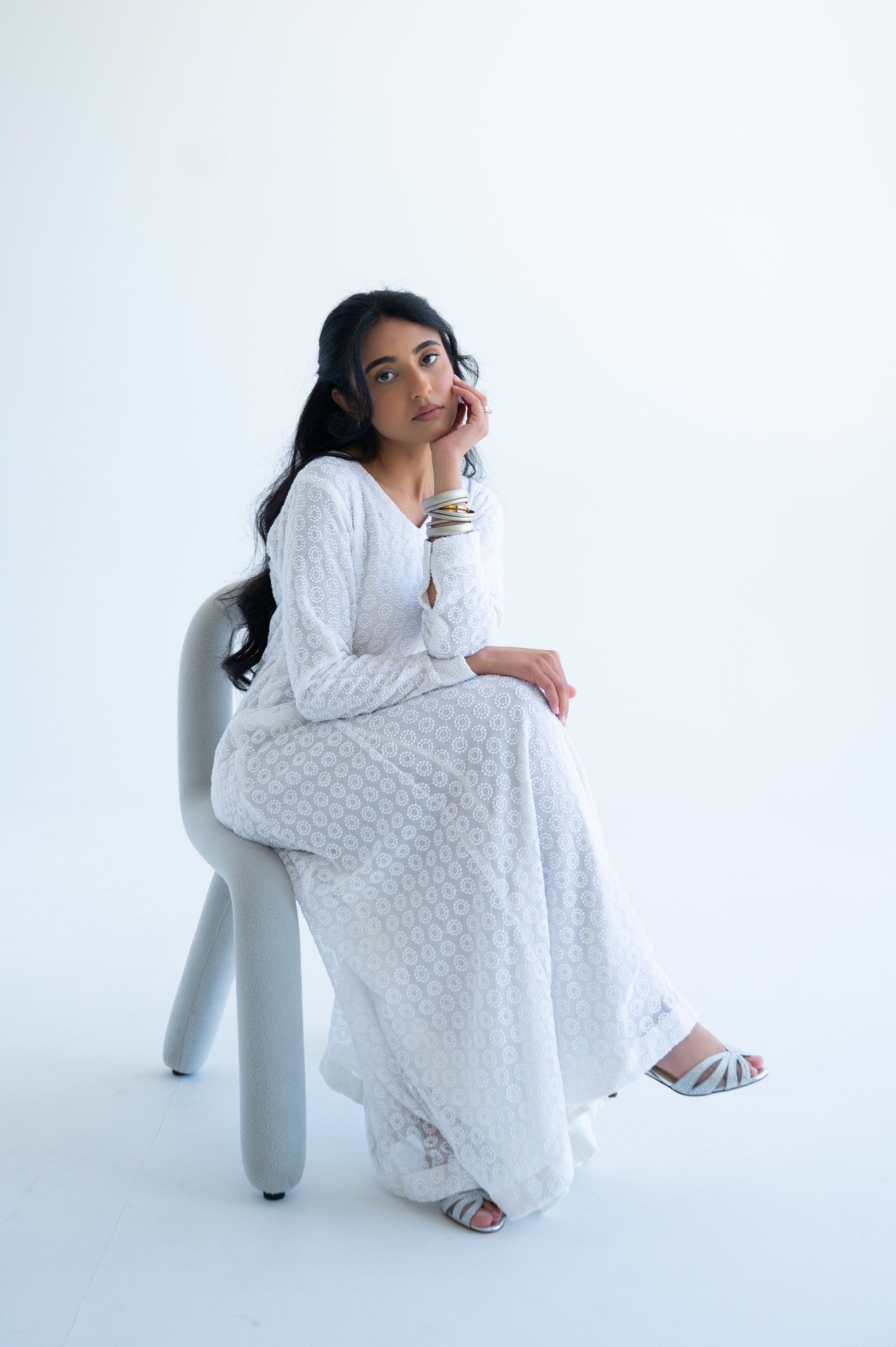 Hawa is at the perfect white summer dress. It is made of beautiful net with lining underneath.