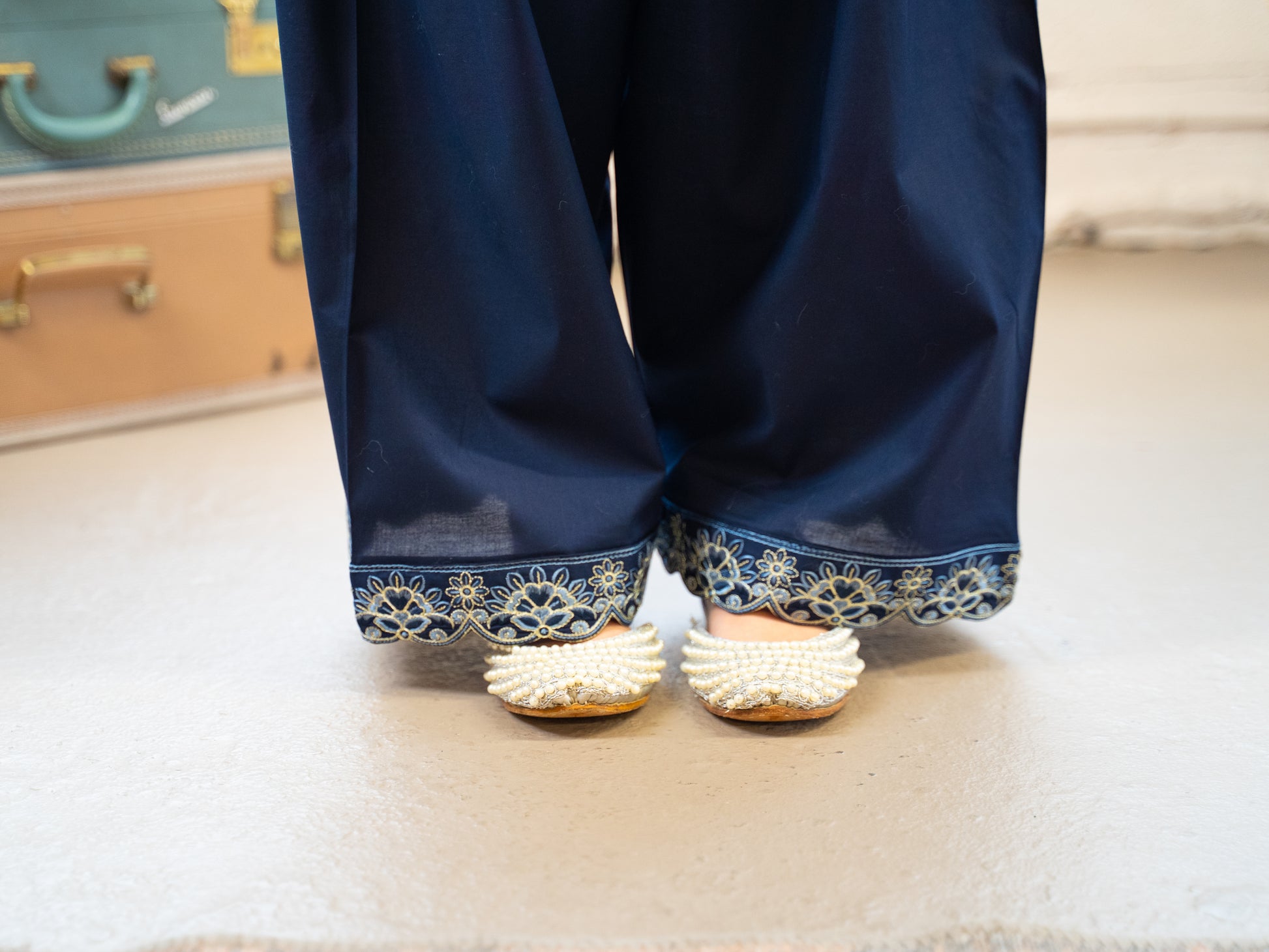 Shahana combines comfort with a striking, sophisticated presence. The rich hue is elevated with intricate embroidery, adding texture and artistry that feel timeless yet fresh. Paired with a beautifully tailored farshi shalwar, Shahana brings back a classic silhouette with a modern finish.